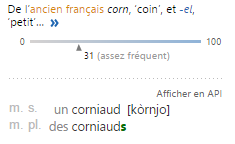On y trouve la racine corne, probablement liée à l’idée de mélange ou de l’animal de basse extraction, et le suffixe péjoratif -iaud (comme dans « niaud »).